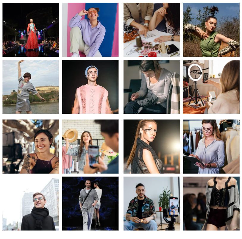 Fashion; catwalks; social events; fashion brands; aesthetic blogs; clothing-related tips.