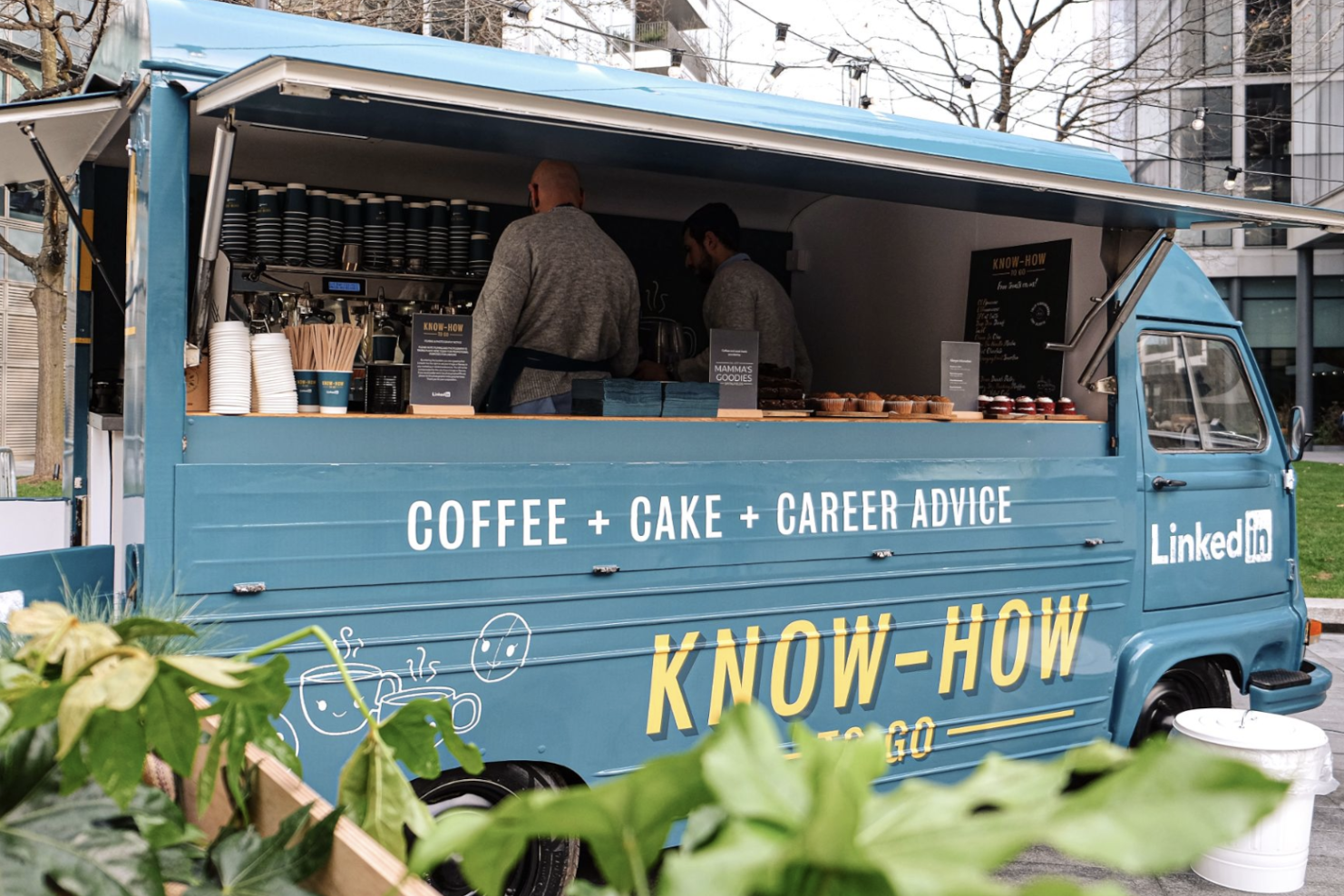 The Know-How To Go mobile coffee truck will be operated in London and Manchester thanks to a collaboration between LinkedIn and VCCP London. In addition to providing free career advising sessions from LinkedIn's experts, the truck had a unique menu that featured themed products such as the "Blueberry Sky Thinking Muffin." The sessions covered a wide range of career stages, including "Know-How to Get In," "Get On," and "Get Further." All of these topics were covered. The coffee truck was accompanied with a social learning campaign that was conducted on LinkedIn and Meta. The campaign's developer, Max Baledge, and various influencers engaged with the general public regarding career guidance. In response to data indicating that Generation Z members are receptive to career prospects yet lack confidence in their professional activities, an initiative has been undertaken.