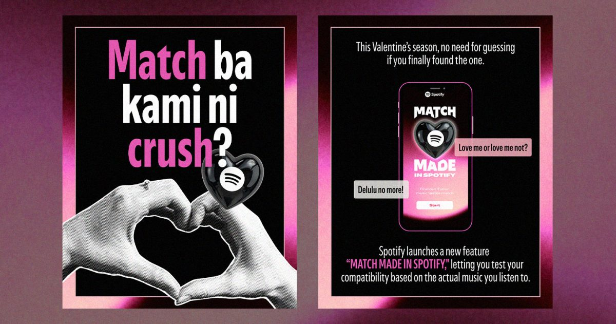 Spotify's "Match Made in Spotify" is an in-app experience that allows users to test romantic or social compatibility based on shared music listening behaviors. By analyzing individual listening histories, the feature generates a compatibility score and produces a personalized playlist for each pairing. Users can then share results across social media platforms, effectively turning private algorithmic data into a public performance of relational identity. The feature launched exclusively within the Spotify app, targeting a culturally significant moment—Valentine's season—to maximize emotional resonance and user engagement.