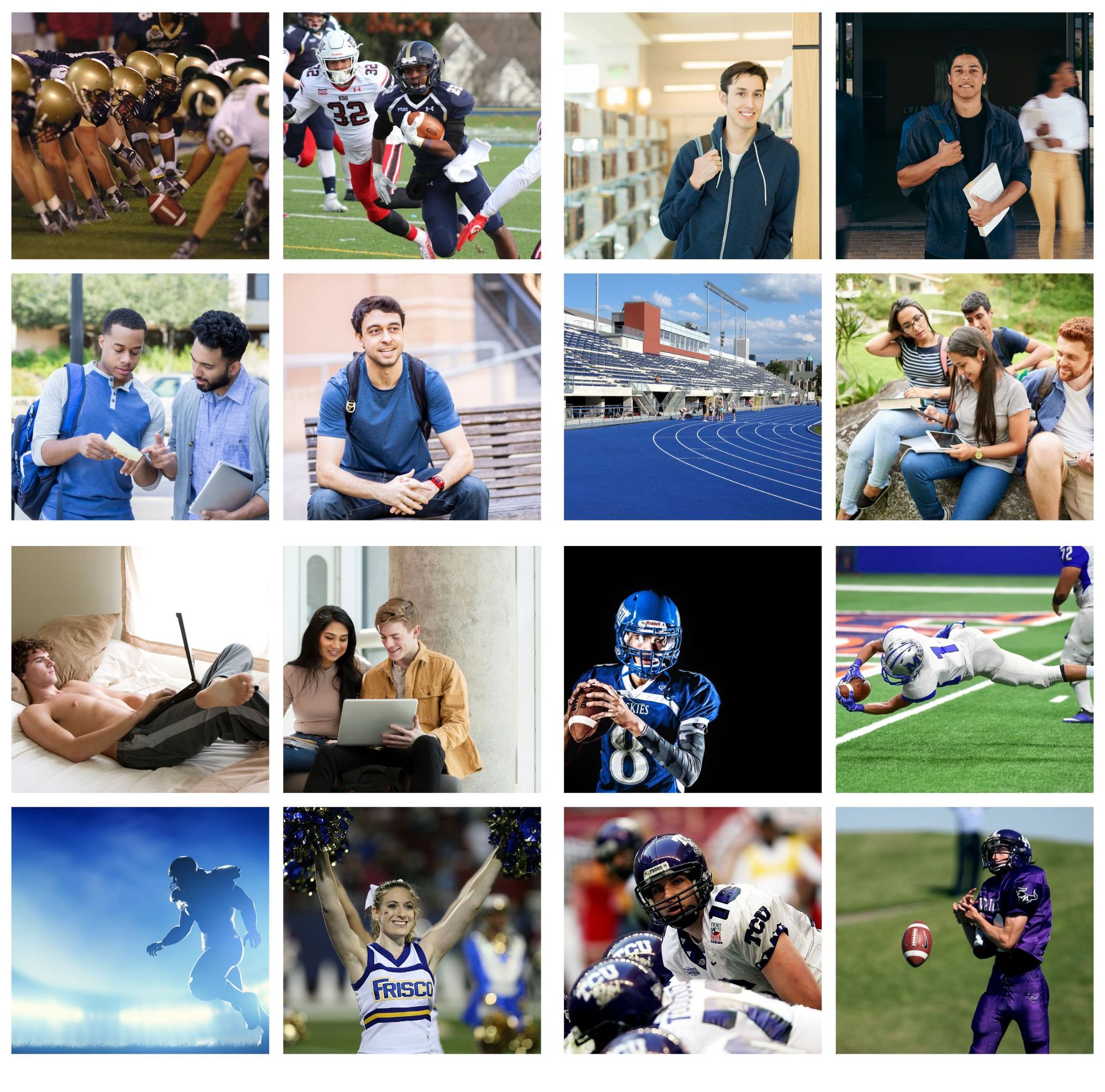 College football; school; personal relationships; social life; travel; parties.
