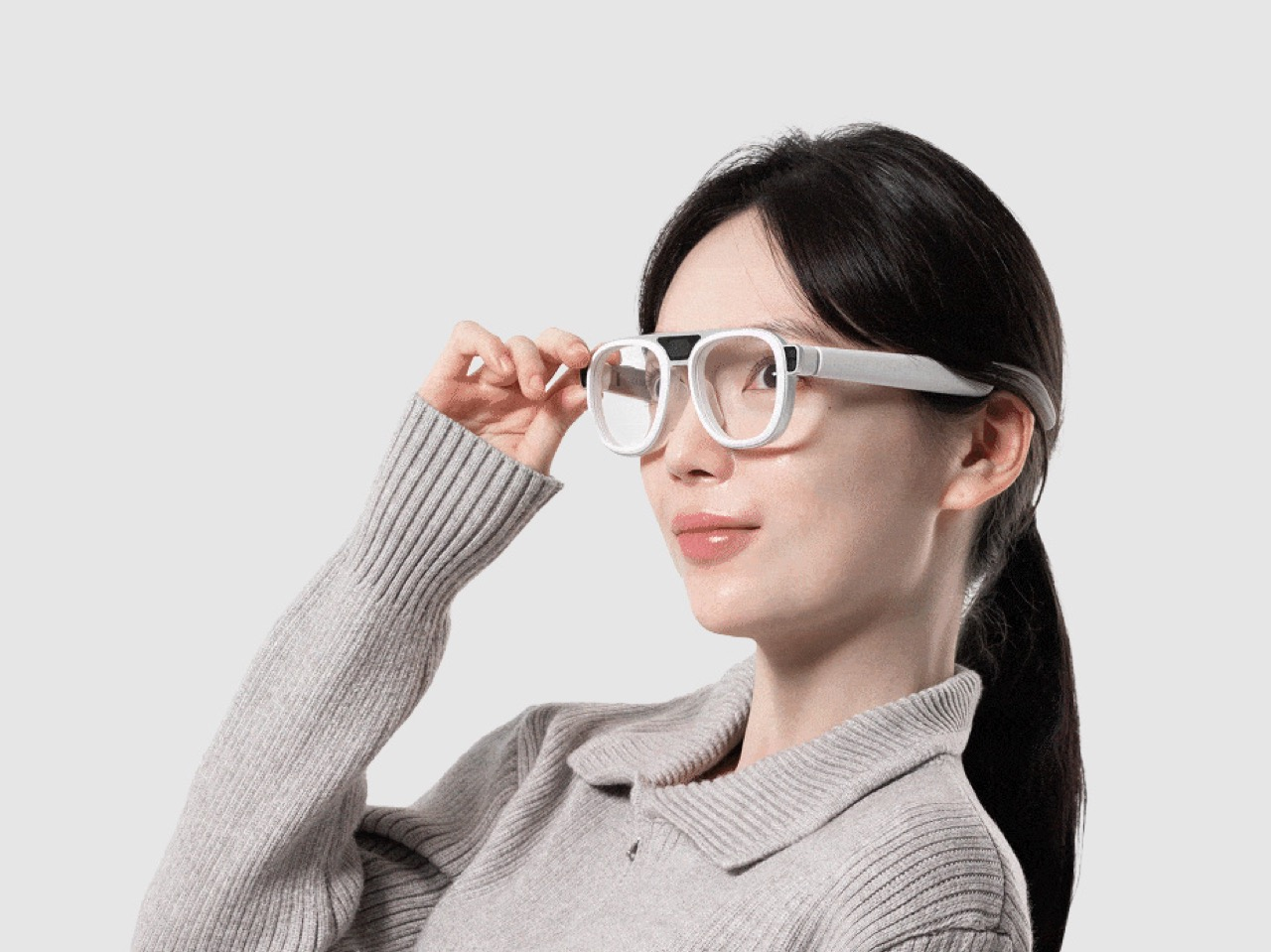 Sherpa is an augmented reality smart glasses concept developed by designers Yeongjun Yun and Jaeyun Lee at Hongik University. The device targets novice drivers during their earliest months behind the wheel, using camera-based environmental recognition and eye-tracking sensors to decode road signs and dashboard icons in real time. Rather than replacing existing in-car systems like CarPlay, Sherpa translates unfamiliar visual stimuli into simplified symbols and text prompts overlaid directly within the driver's field of vision. The hardware follows current consumer AR conventions—rounded white frames housing display optics and an adjustable temple mechanism—while the software prioritizes contextual interpretation over general-purpose augmentation.